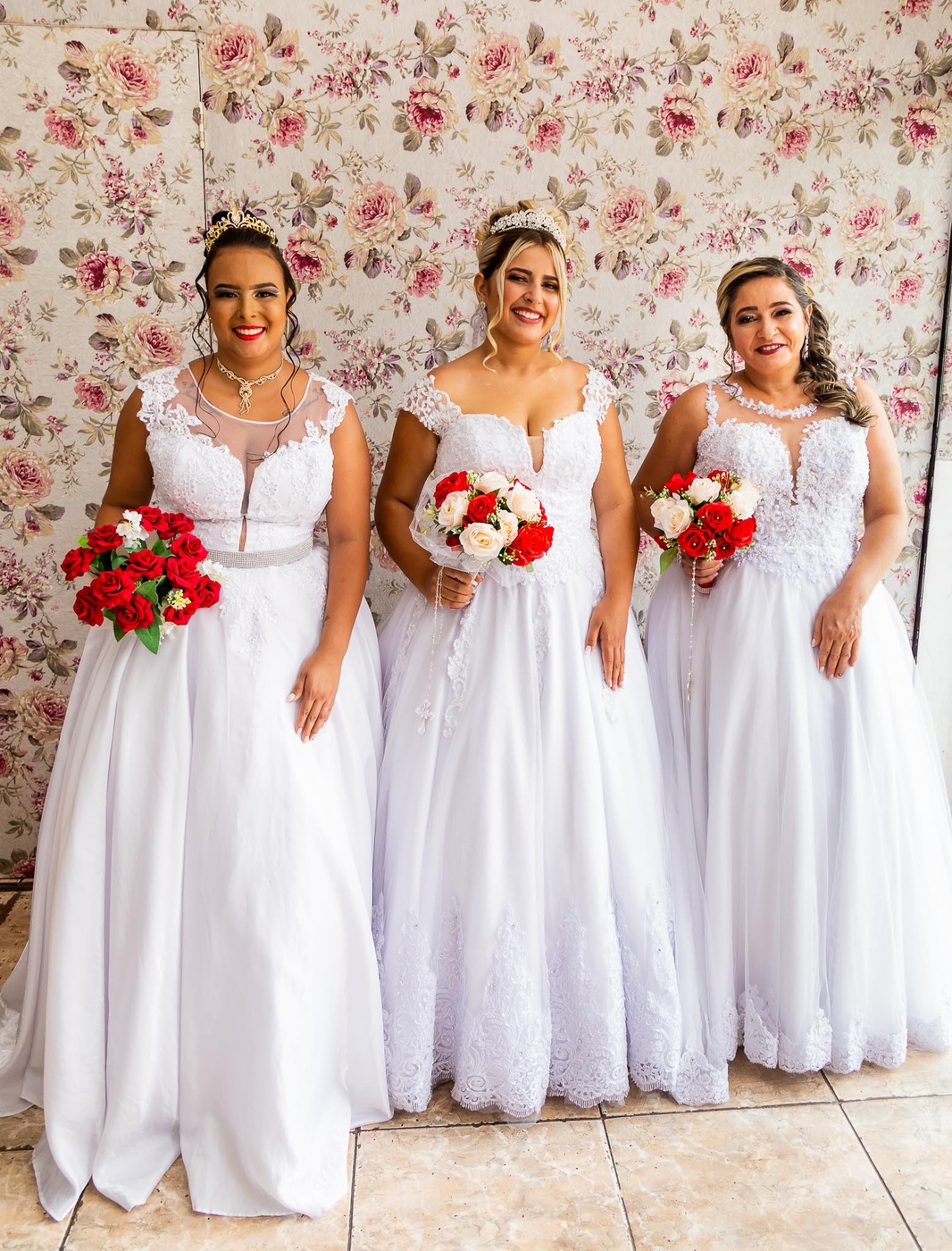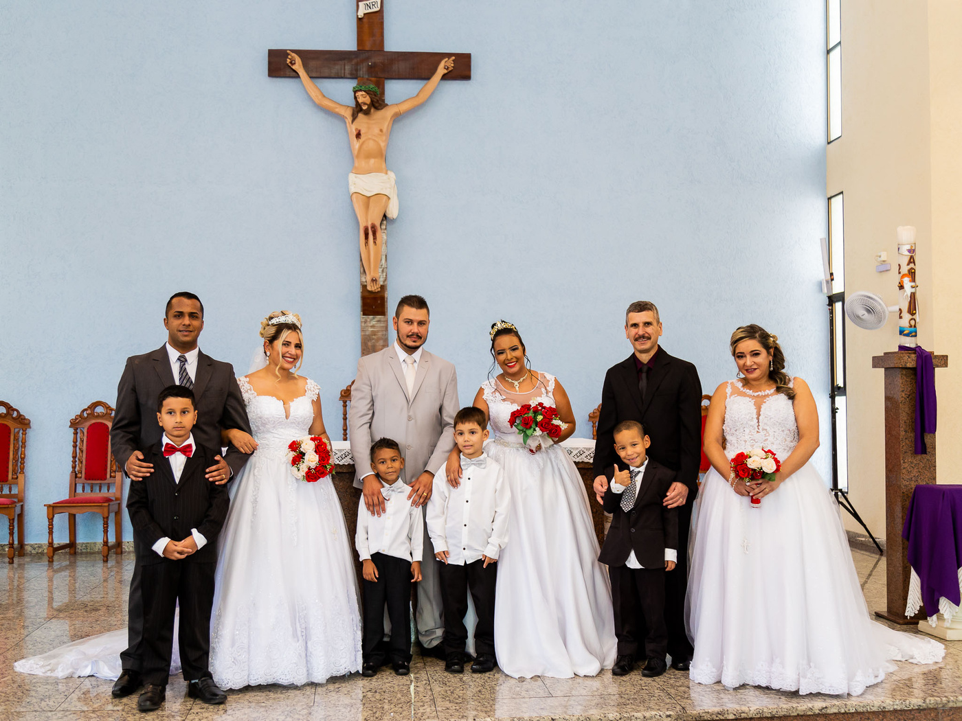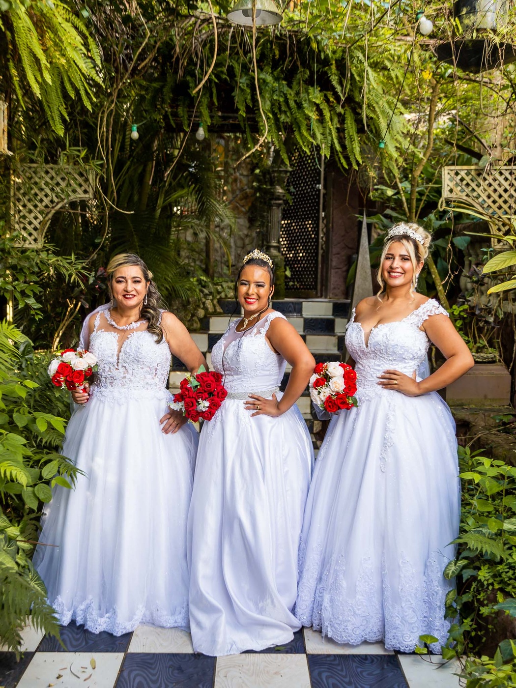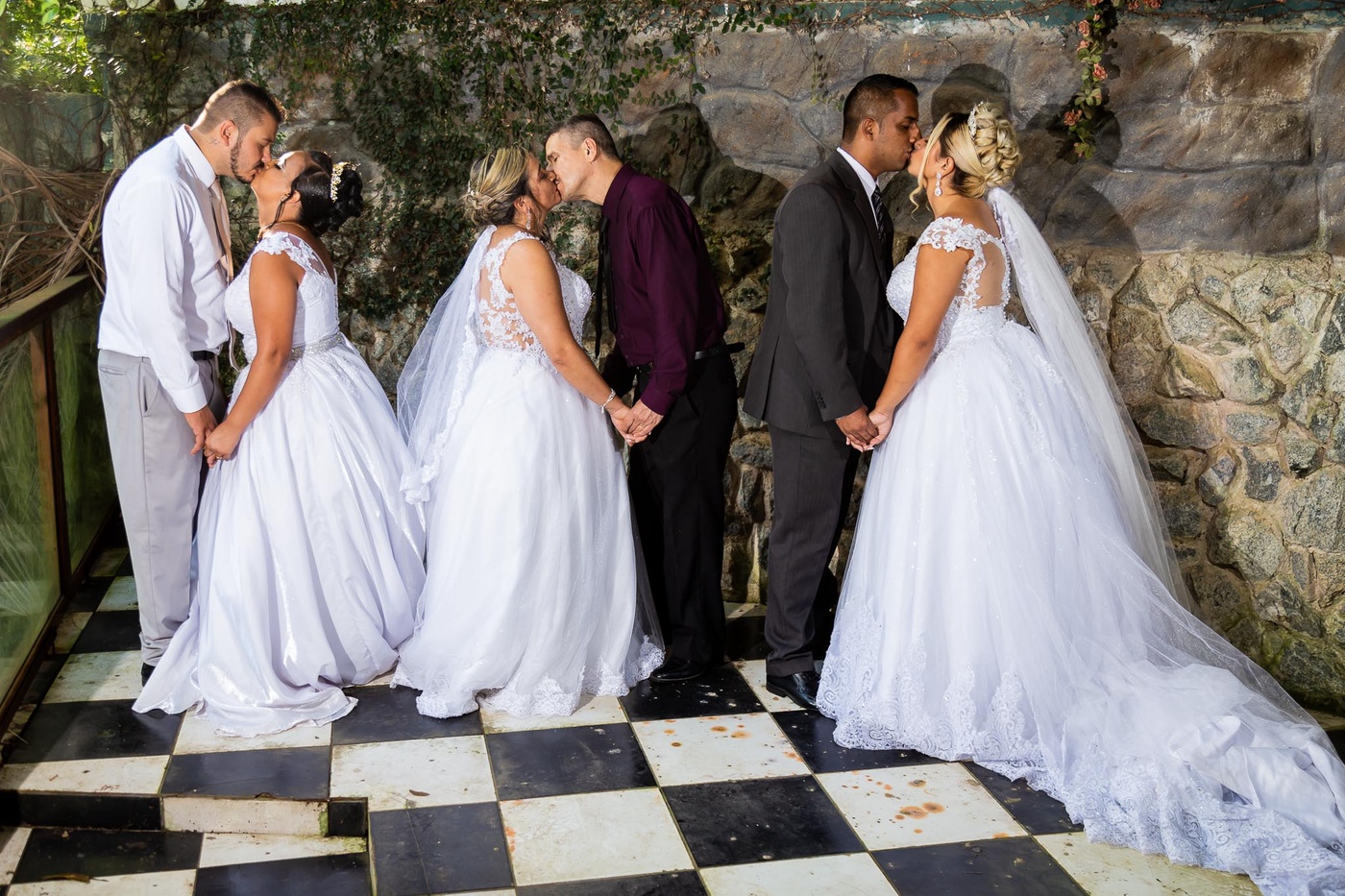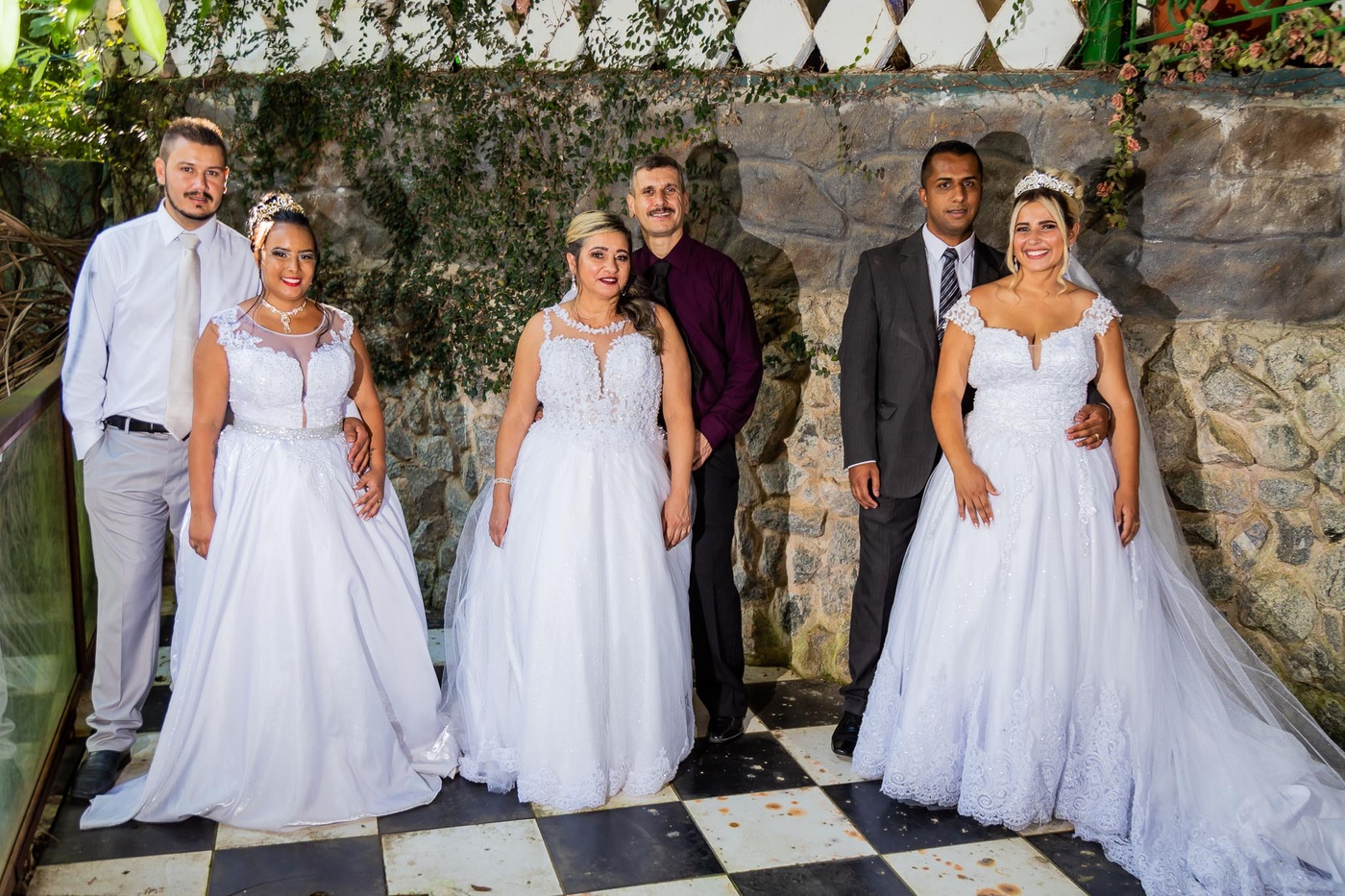 1, 2, 3 isso mesmo casamento Triplo 3 casais celebrando ao mesmo tempo esse momento cheio de Amor